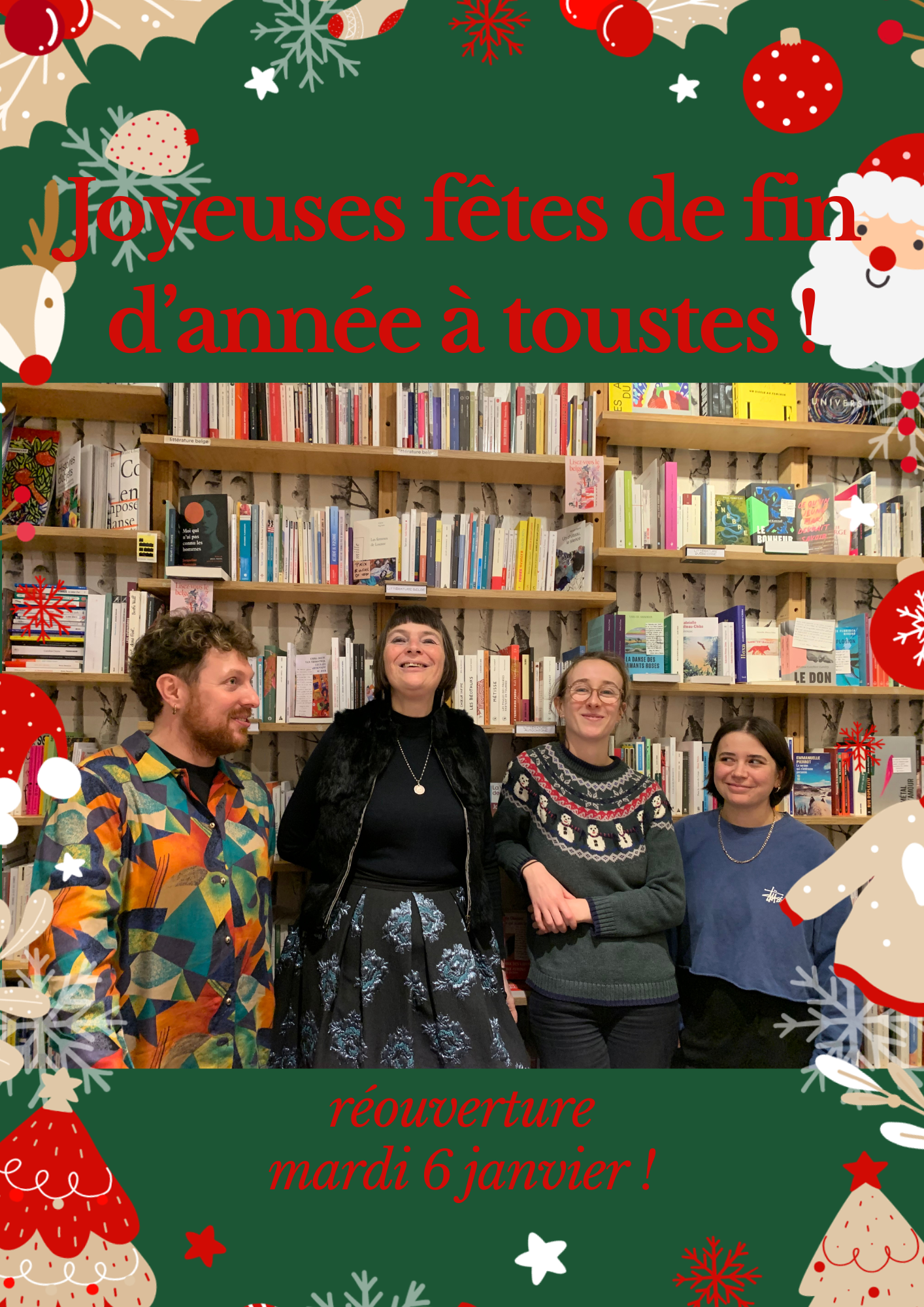 Merci pour tout! 21 December 2025Non classéTULITU La librairie sera fermée du 25 décembre au 5 janvier 2026 inclus. Passez de belles fêtes et à bientôt! La team TULITU
